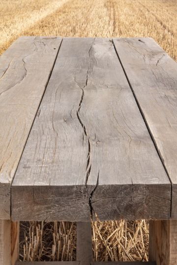 Přesílený dub, ze kterého je stůl vyroben, byl původně určený k rozštípání a ke spálení. Nesplňuje totiž přísné kvalitativní normy předepsané pro truhlářskou výrobu.