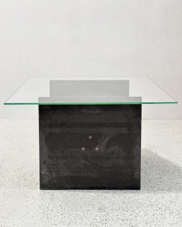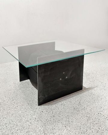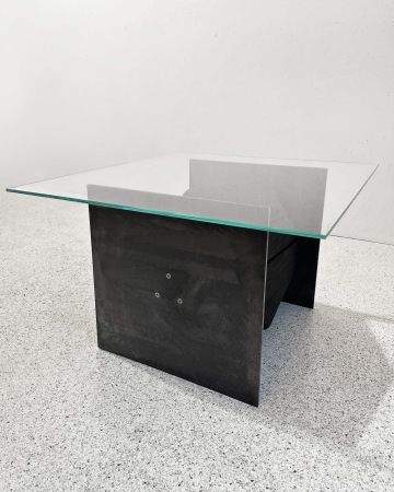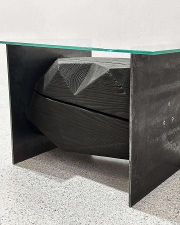 Konferenční stolky jsou vyrobeny kombinací materiálu karbonizovaného dubového masivu a válcovaného surového železného plechu. Podnož stolku je tvořena mohutným masivním dřevěným karbonizovaným '' kamenem'', sevřeným mezi dvěma kovovými plechy. Stolová deska tvořená čirým sklem prozrazuje princip a velkorysost trnože.