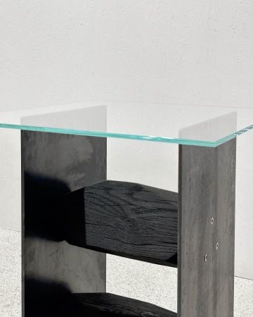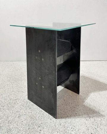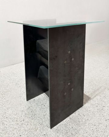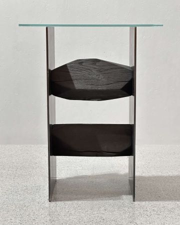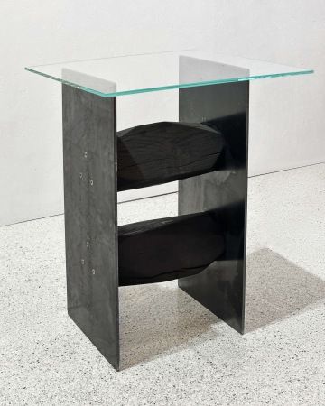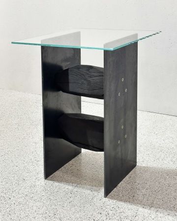 Konferenční stolky jsou vyrobeny kombinací materiálu karbonizovaného dubového masivu a válcovaného surového železného plechu. Podnož stolku je tvořena mohutným masivním dřevěným karbonizovaným '' kamenem'', sevřeným mezi dvěma kovovými plechy. Stolová deska tvořená čirým sklem prozrazuje princip a velkorysost trnože.