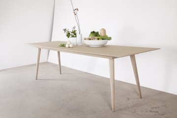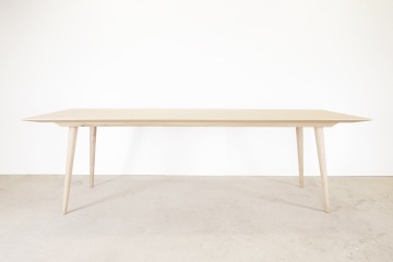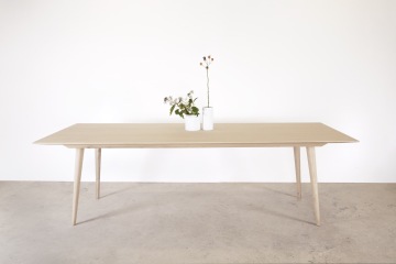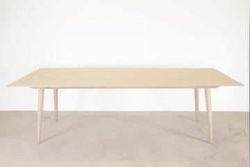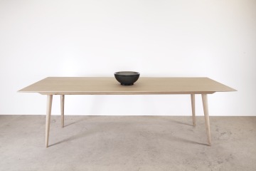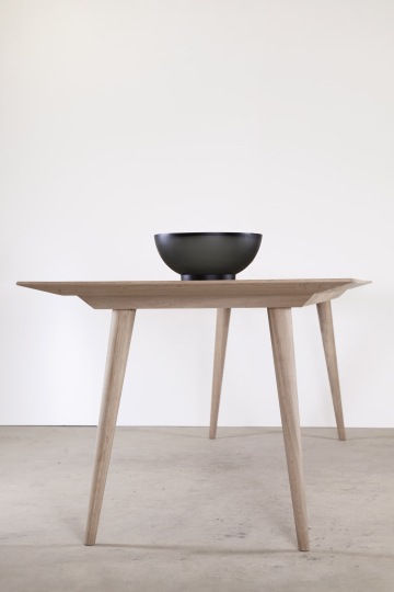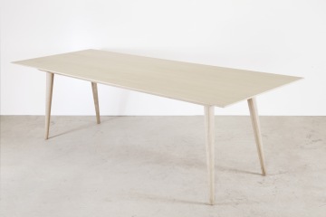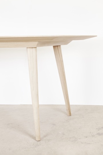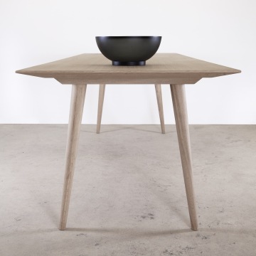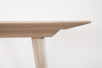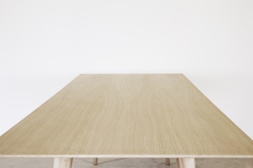 Stůl je vyroben v kombinaci dubového masivu a dubové dýhy. Pláty dýhy jsou seskládána do osově souměrné kresby na vrchní části stolové desky.